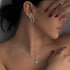 Available in solid 925 sterling silver or 14K gold vermeil, these hoops feature a smooth push-button closure for a secure, seamless fit. The Lynette Hoops elevate everyday style with timeless brilliance and a modern edge.